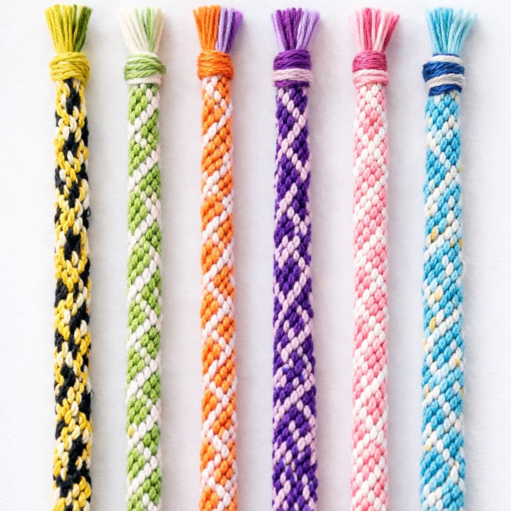 • Friendship Bracelets: From braiding to macrame to bracelet looms – We have so many options for cord + yarn that can be used to create colorful bracelets